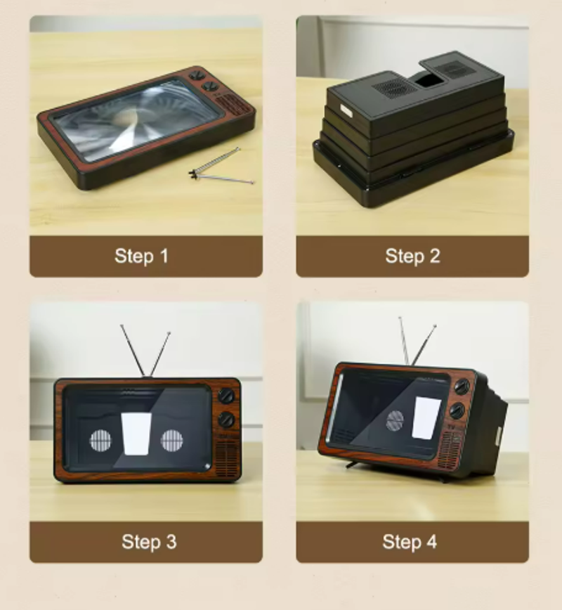 Ultra clear retro TV shaped desktop stand mobile phone screen amplifier and projection screen magnifier product category